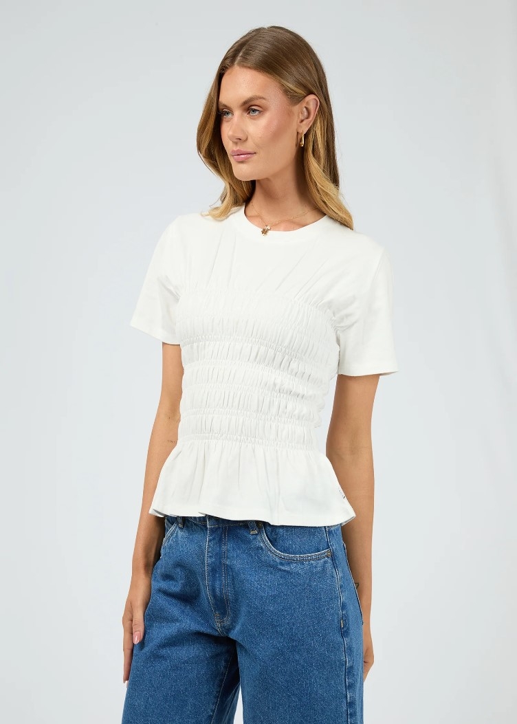 Elevate your everyday style with our chic Lipa Ruched Top, designed to offer a flattering fit and a touch of sophistication, featuring ruching details throughout the main body that created a beautiful silhouette. Crafted from soft, breathable cotton fabric, this tee combines comfort with contemporary flair. Ideal for casual outings or dressier occasions, the perfect versatile addition to any wardrobe. Pair with some denim bottoms and sandals for a more casual look or dress it up with some tailored pants and heels.