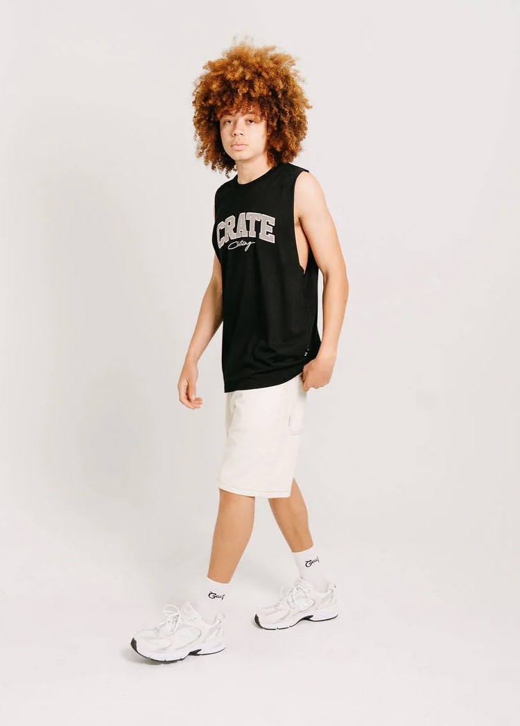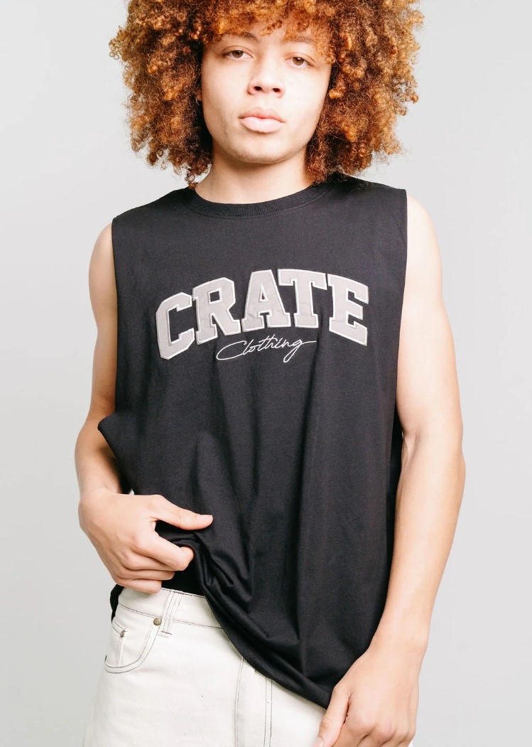 Introducing our Crate Varsity Muscle Singlet. Designed for a clean & everyday look. This garment is easy to wear & perfect wear to any style. MODEL:Height 6'2 ftChest 89 cmWaist 82 cmModel is wearing Size (L)
