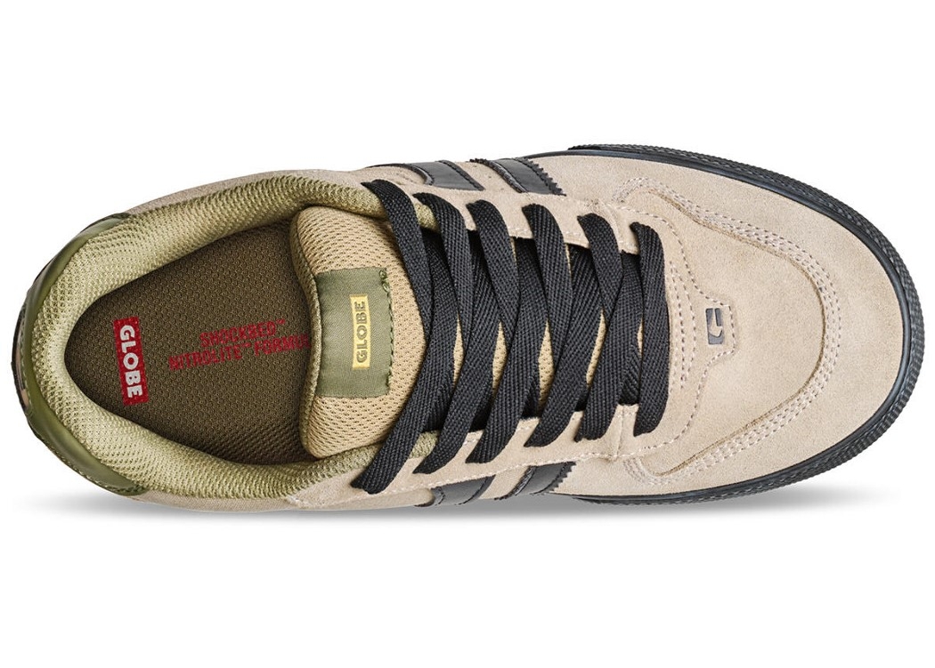 The Encore 2 in Desert/ Black is a classic vulcanised skate style with twin design stripes, full length herringbone outsole pattern and triple stitch toe cap.