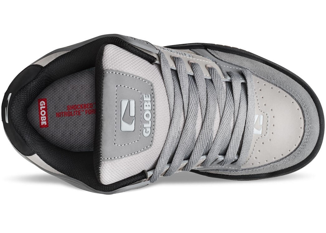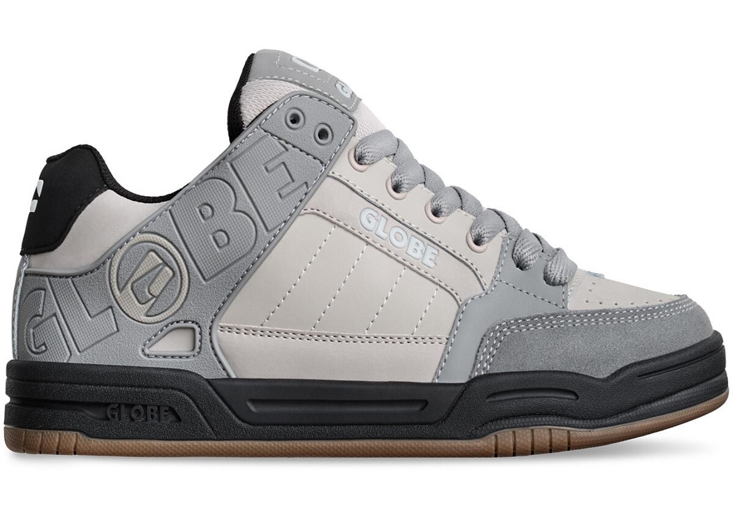 The Tilt in Titanium / Black Globe’s classic heritage skate silhouette featuring a moulded TPR outside collar for support and durability, and S-Trac™ sole pattern for enhanced grip and board feel.