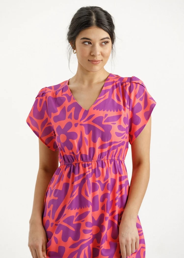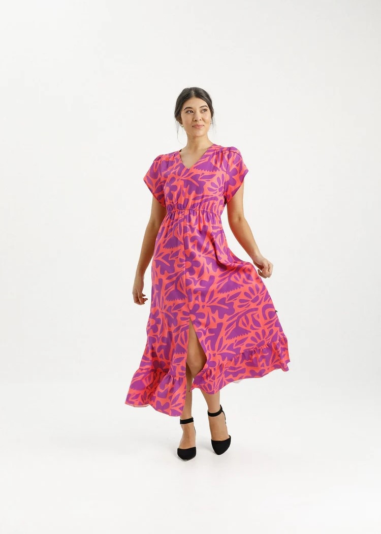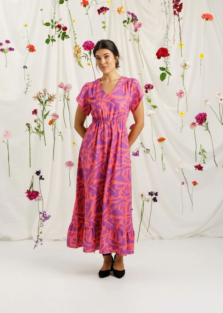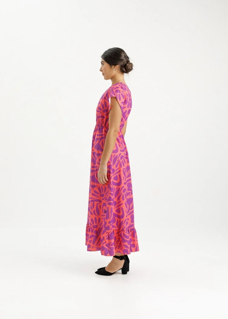 Made in our custom designed Sunset Floral print, which is designed by us, and printed onto our fabric, before making it into this beautiful dress.
