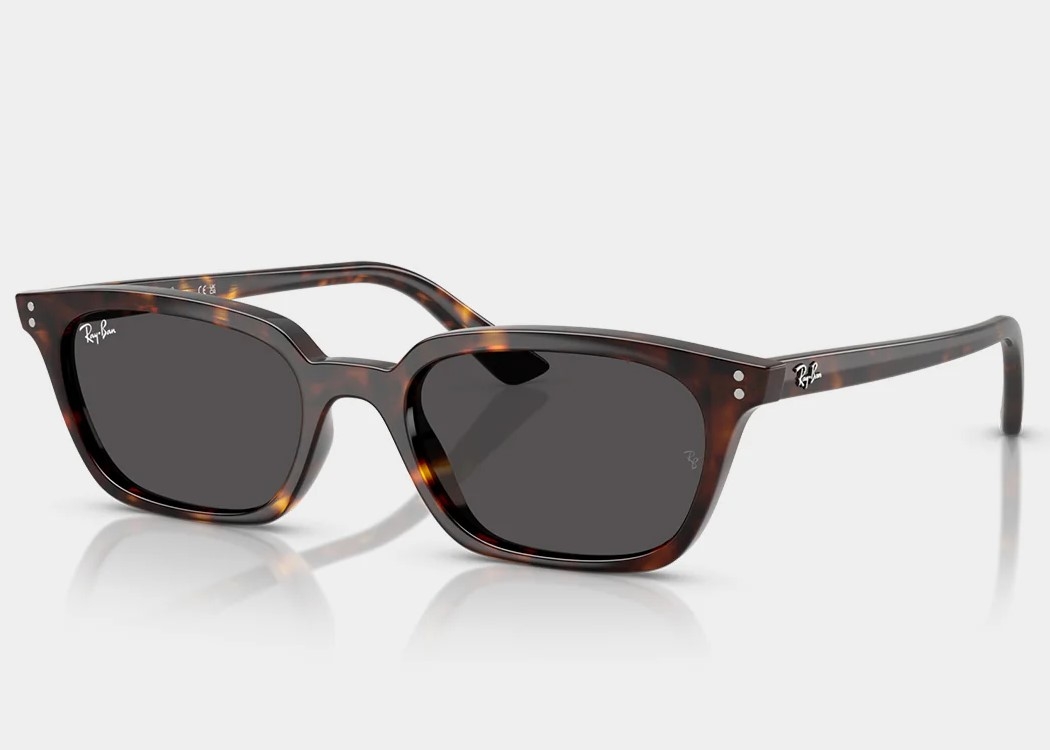 Ray-Ban Zaya Bio-Based features a unique pillow-shaped frame in havana color, with solid dark grey lenses. These stylish sunglasses are perfect for any occasion, whether you're lounging by the pool or out running errands.