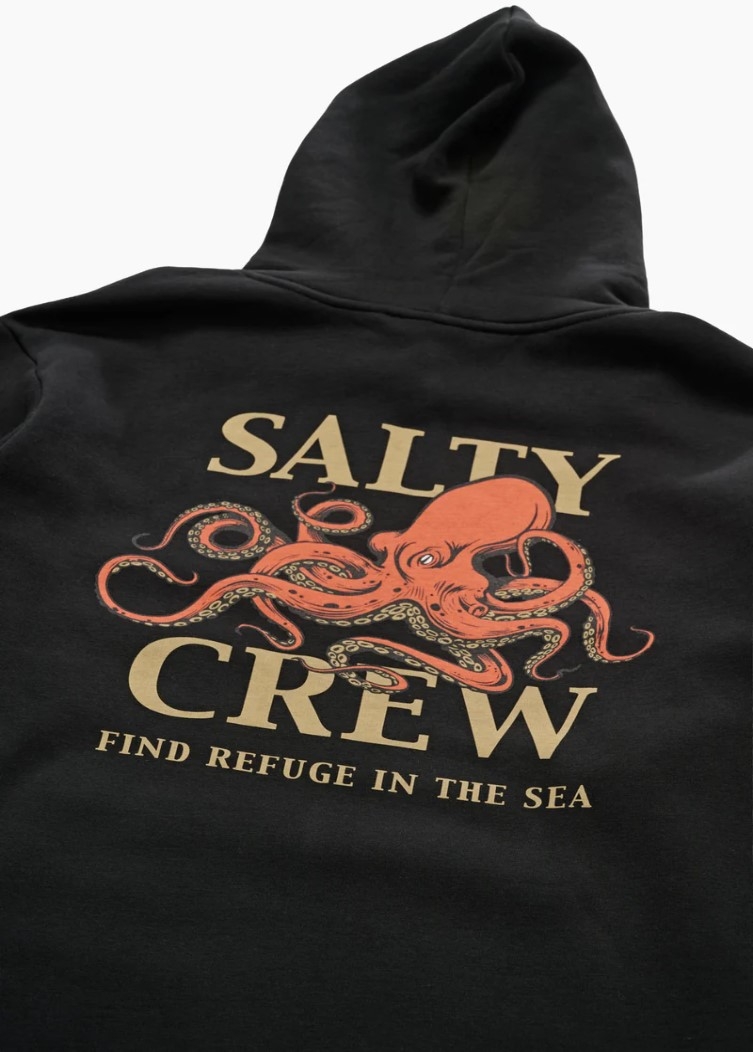 Ink Sling MW Hood is made from our signature mid-weight Cotton/Polyester Brushed Fleece, 300gsm in weight. Featuring two-piece hood with encased drawcord, rib knit cuffs & hem, self-fabric kanga pocket & Salty Crew clamp label at hood opening. Screen Printed front and back prints.