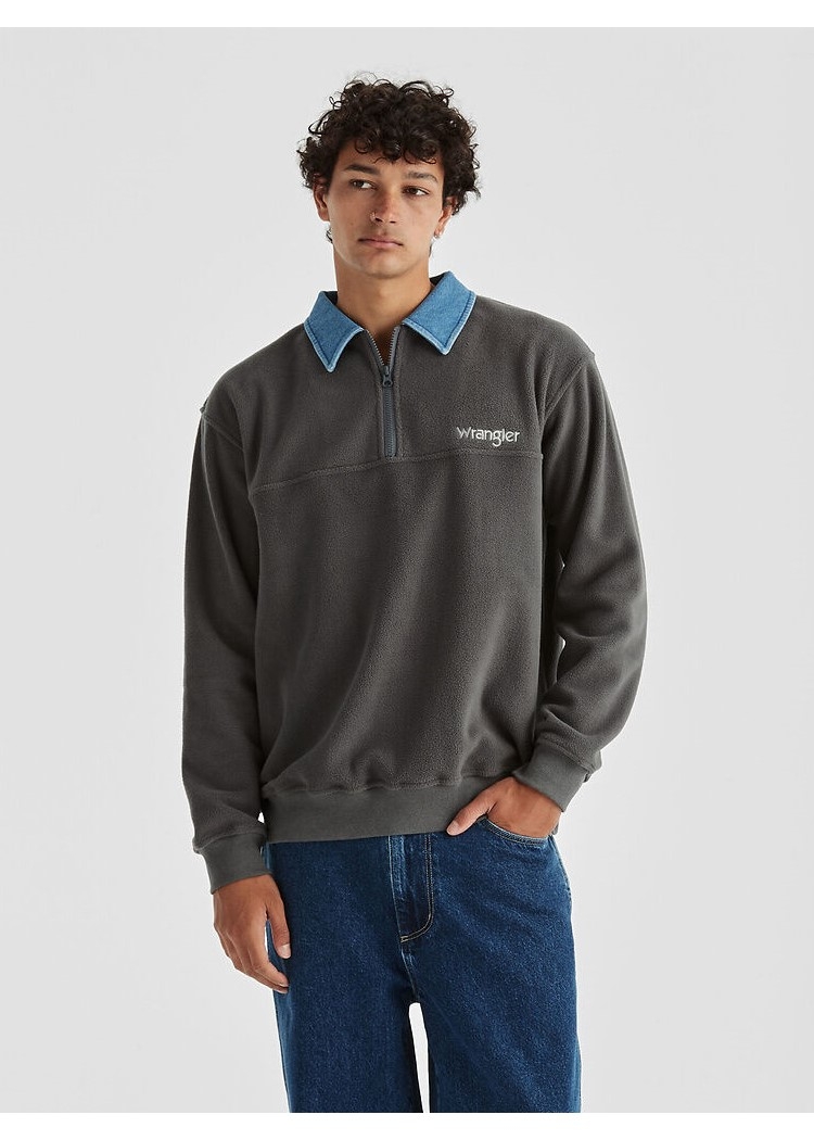 The Collar Polar Sweat in Slate Blue is a 90s inspired polar fleece sweat with a denim collar that can be zipped down to the upper chest. Crafted in a high density polar fleece fabric, it is both comfortable and warm and features Wrangler logo embroidery on the left chest for subtle branding, making for the perfect vintage inspired sports aesthetic.